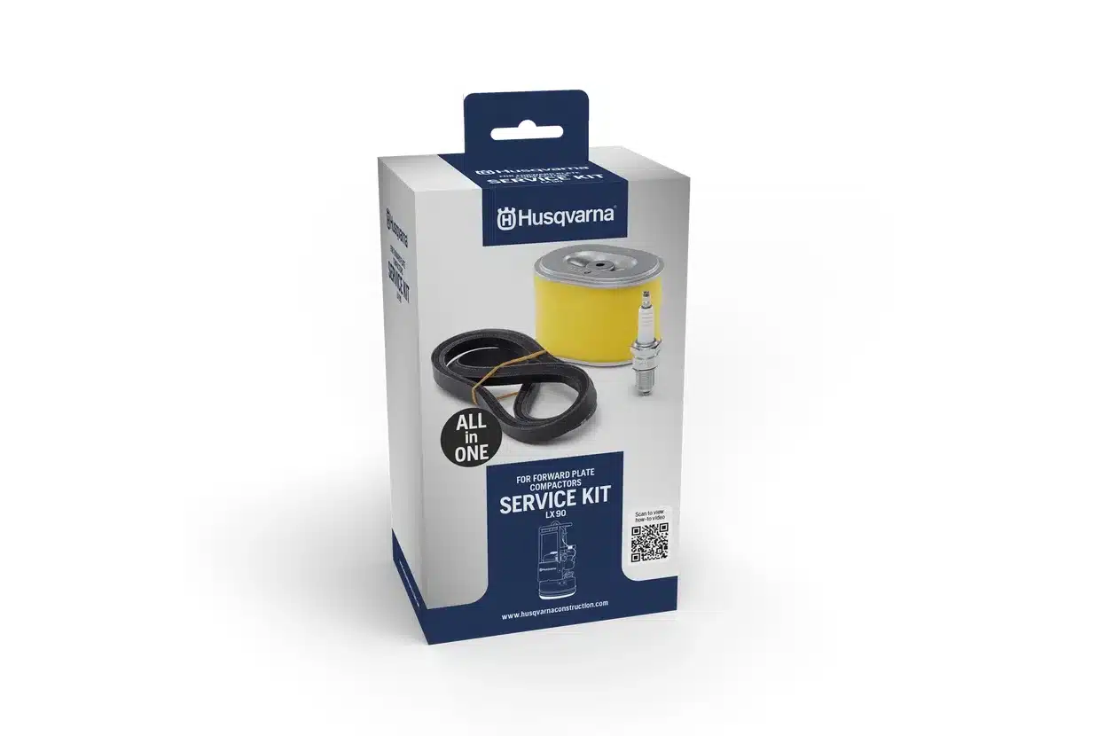 Husqvarna LX 90 -huoltotarvikepaketti on ammattikäyttöön suunniteltu vuosihuollon tarvikesetti, joka pitää bensiinikäyttöisen LX 90 -maantiivistäjän toimintakunnossa ilman tarpeetonta seisokkiaikaa. Paketti kokoaa yhteen kaikki 12 kuukauden huoltoon tarvittavat kuluvat osat: ilmansuodattimen, kiilahihnan ja sytytystulpan.